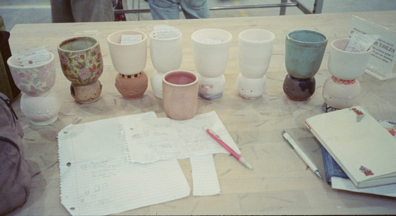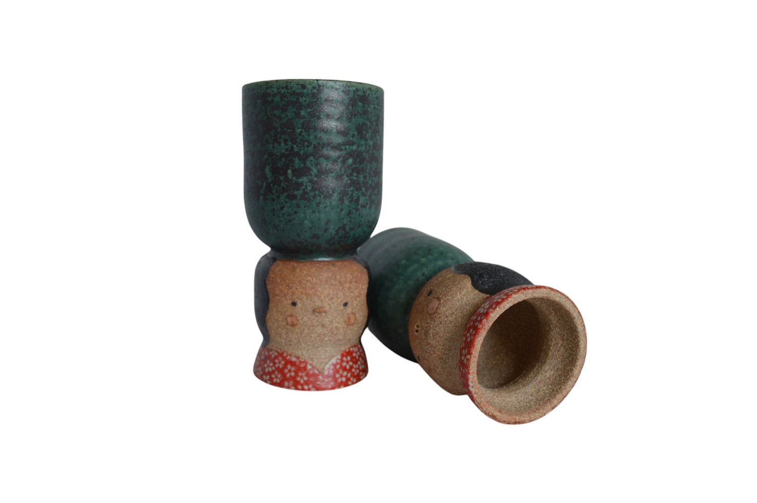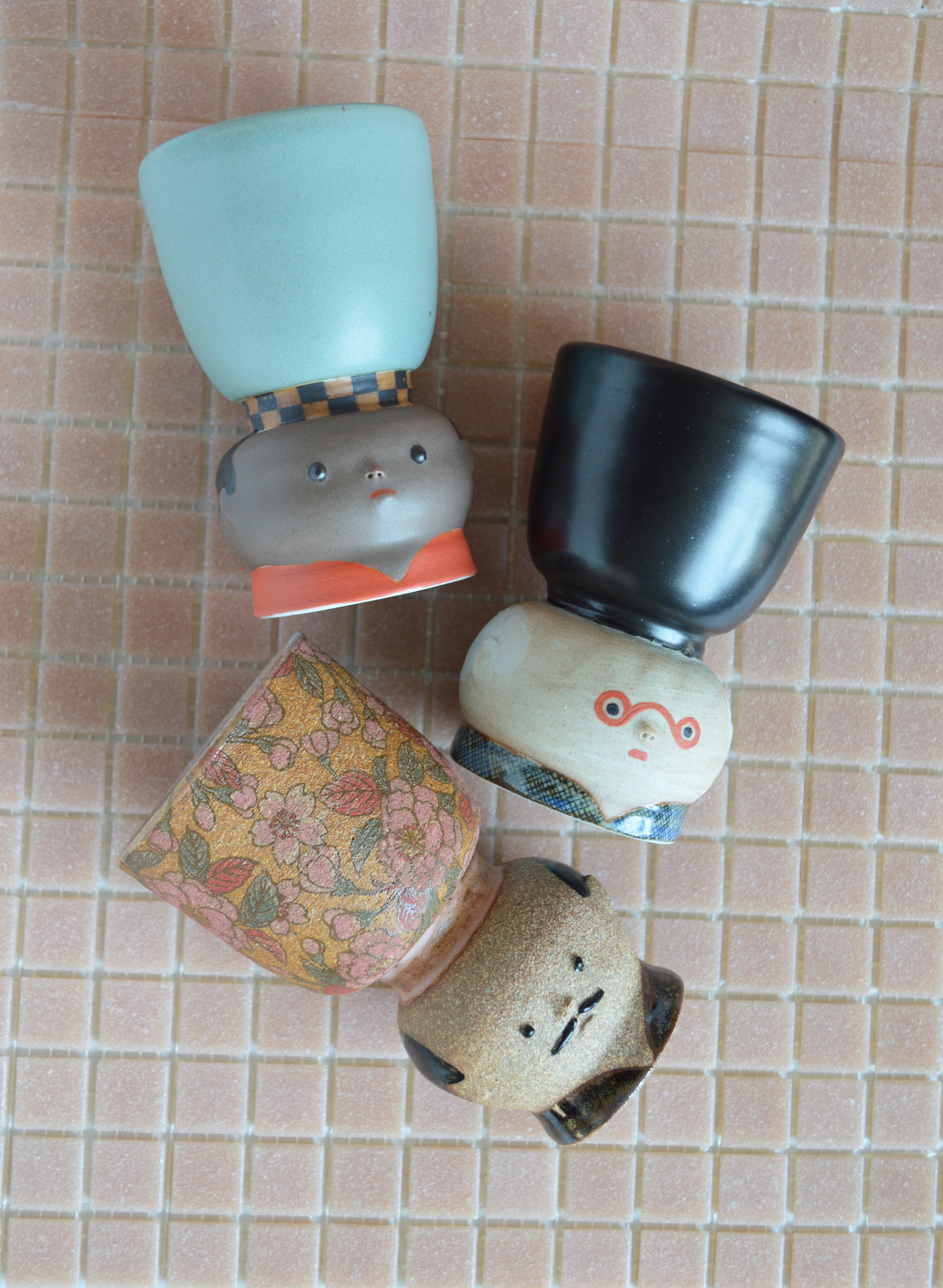 These were samples as I was trying to figure out the next Signature Cup. The flower shirt and ocean-y top reminds me of Hawaii. Their mouths are hard to see but they are singing.