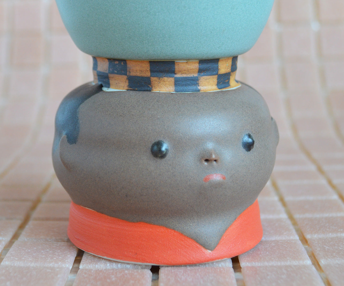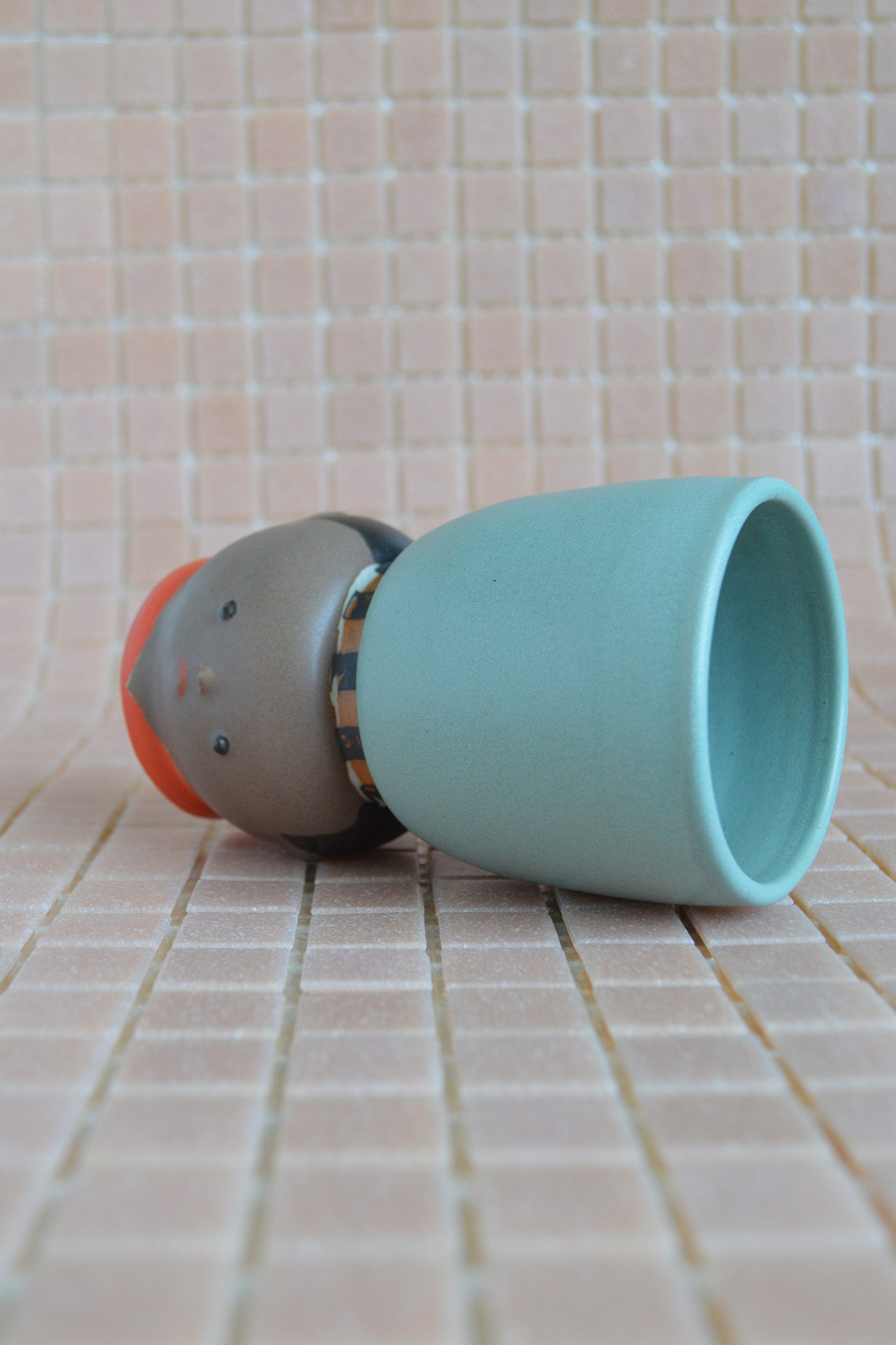 The Lil' Prince Sculpture Cup is a one-of-a-kind stoneware cup with a beautiful satin blue glaze on top and a hand-sculpted face on the bottom. He has a checker-style crown and will make you feel like a lil' prince yourself as you sip your beverage. Enjoy hot liquids in your cup by using the head as a handle (!) or display it on your shelf to admire from afar. Limited edition and truly special.