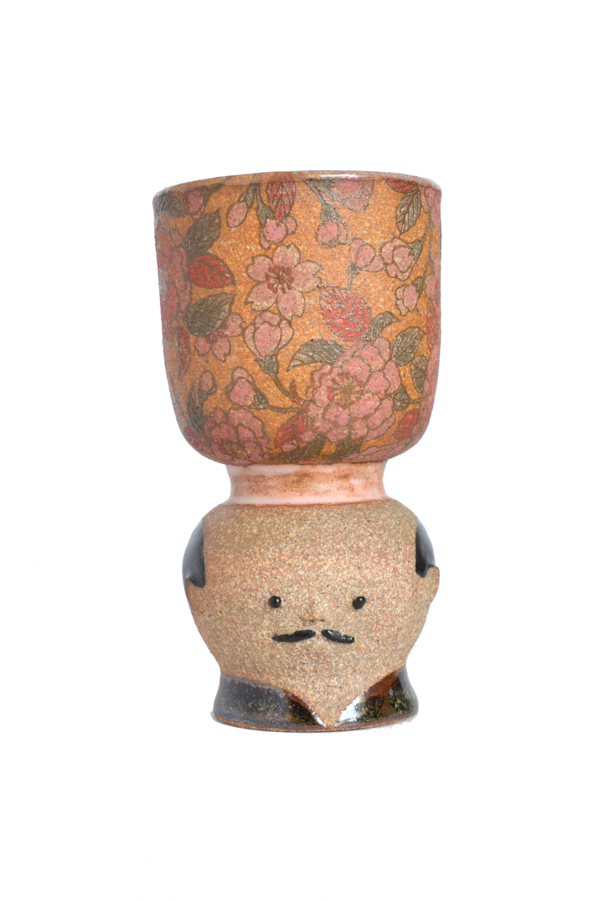 The Mr. M Sculpture Cup is a one-of-a-kind stoneware cup with a beautiful floral print on top and hand-sculpted face on the bottom. He has a mustache and looks a little bit fancy. Enjoy hot beverages in your cup by using the head as a handle (!) or display it on your shelf to admire from afar. Limited edition and truly special.