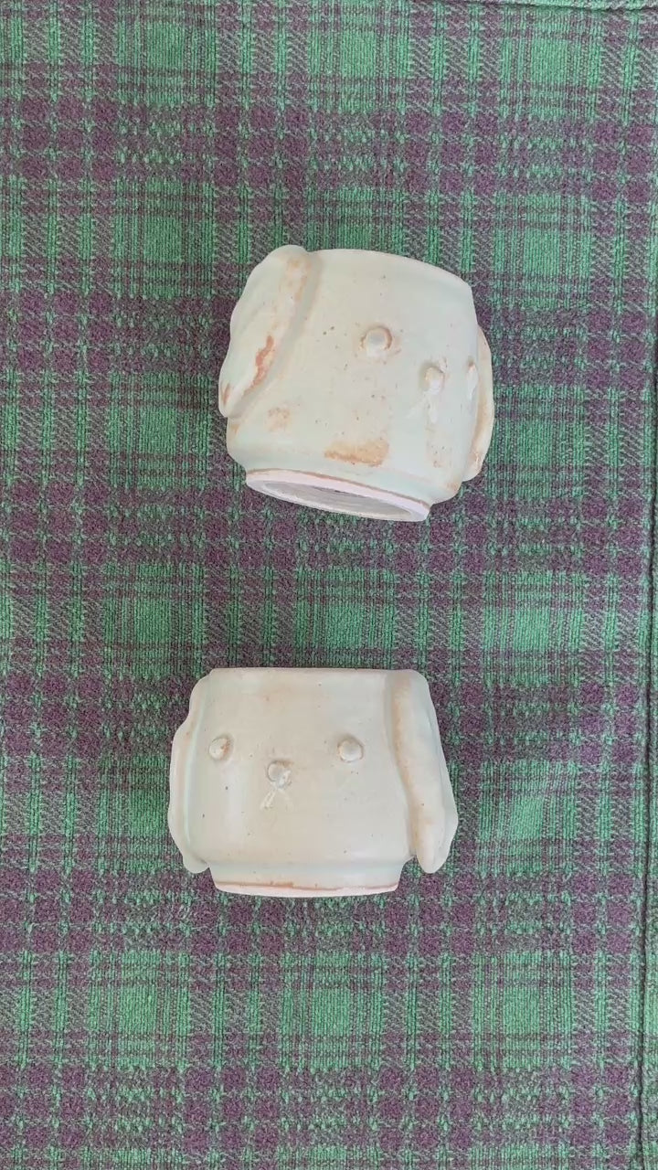 A rustic green rabbit cup! Fits about 4 oz of liquid. 2.5" tall, 2.5" wide.